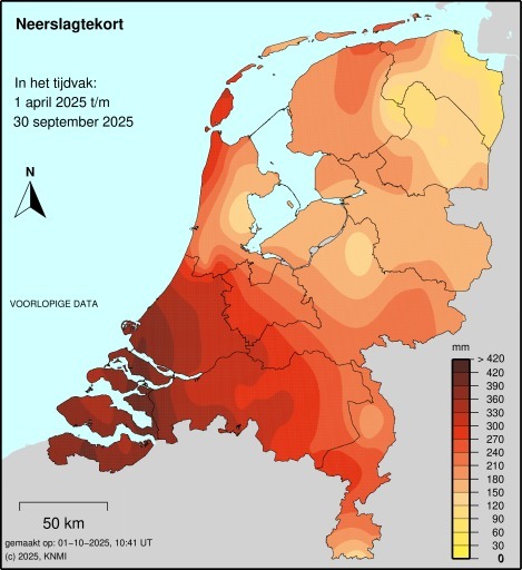 - Daar waar droogte toesloeg is er sprake van mindere opbrengsten en een lager zetmeel (voor maïs). En dus een lager totale droge stofopbrengst (vooral in het rode gebied in het zuidwesten van Nederland).